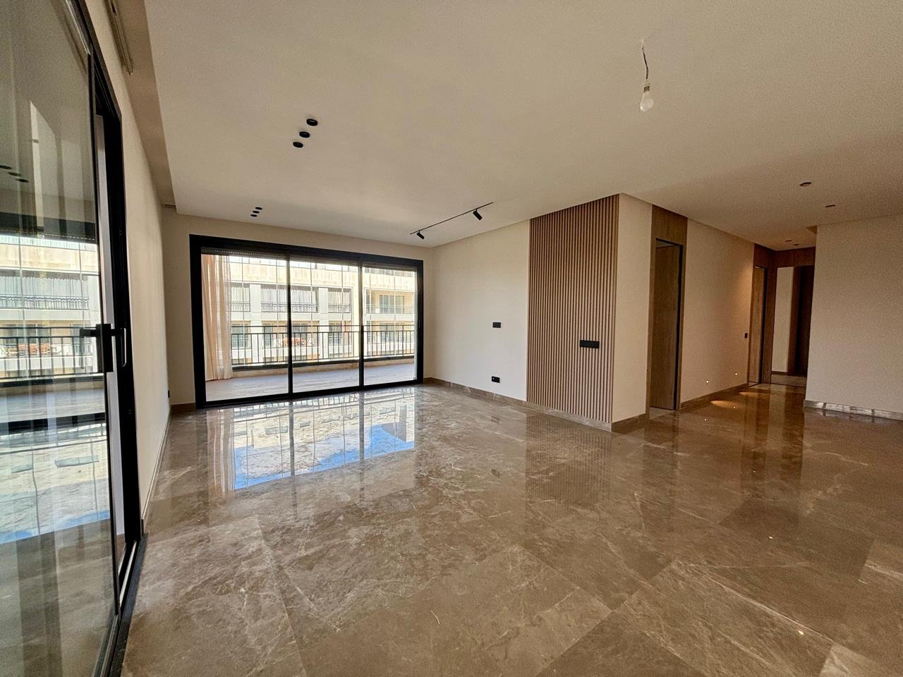 Salon spacieux en marbre, ouvert sur les terrasses