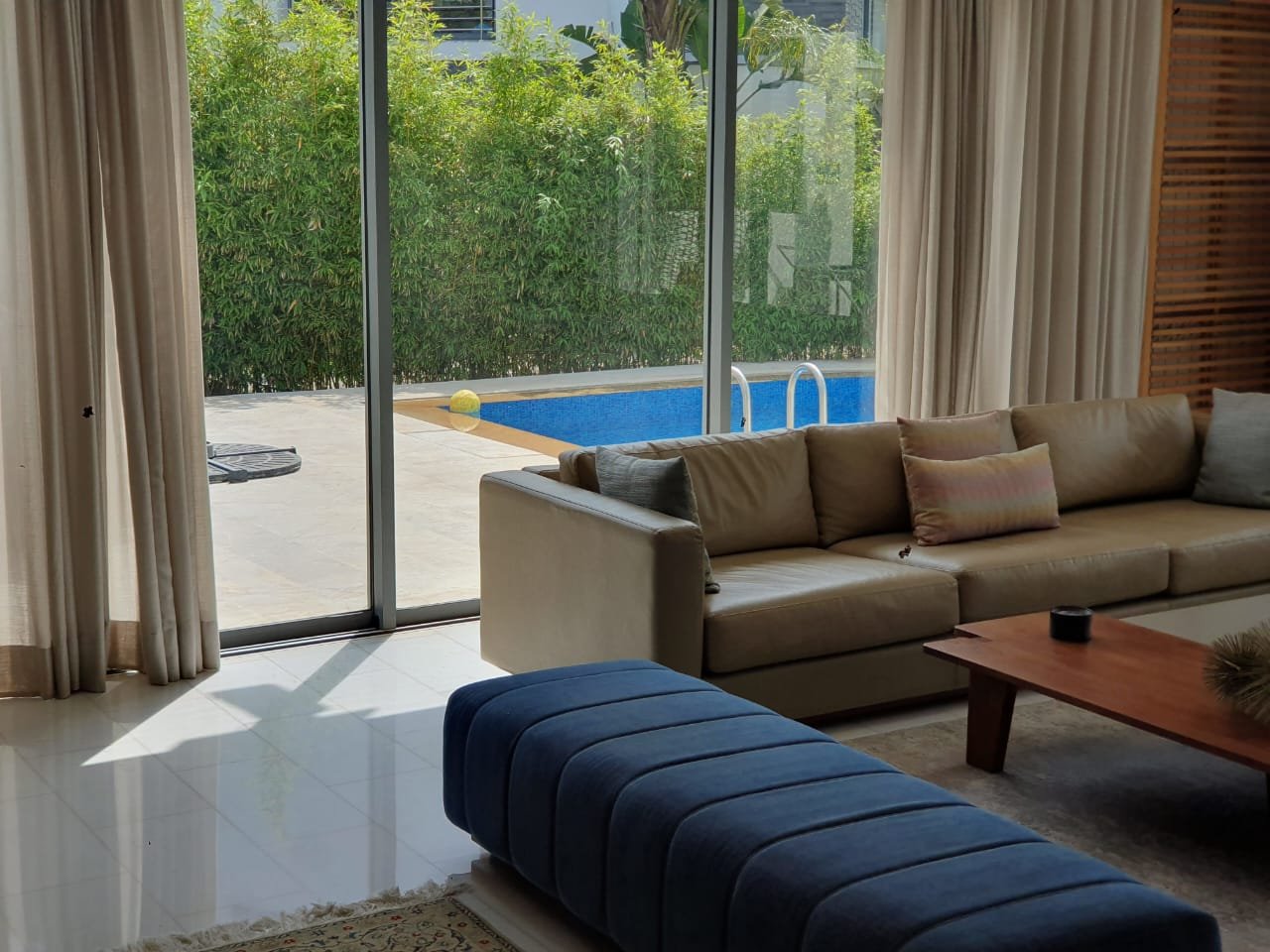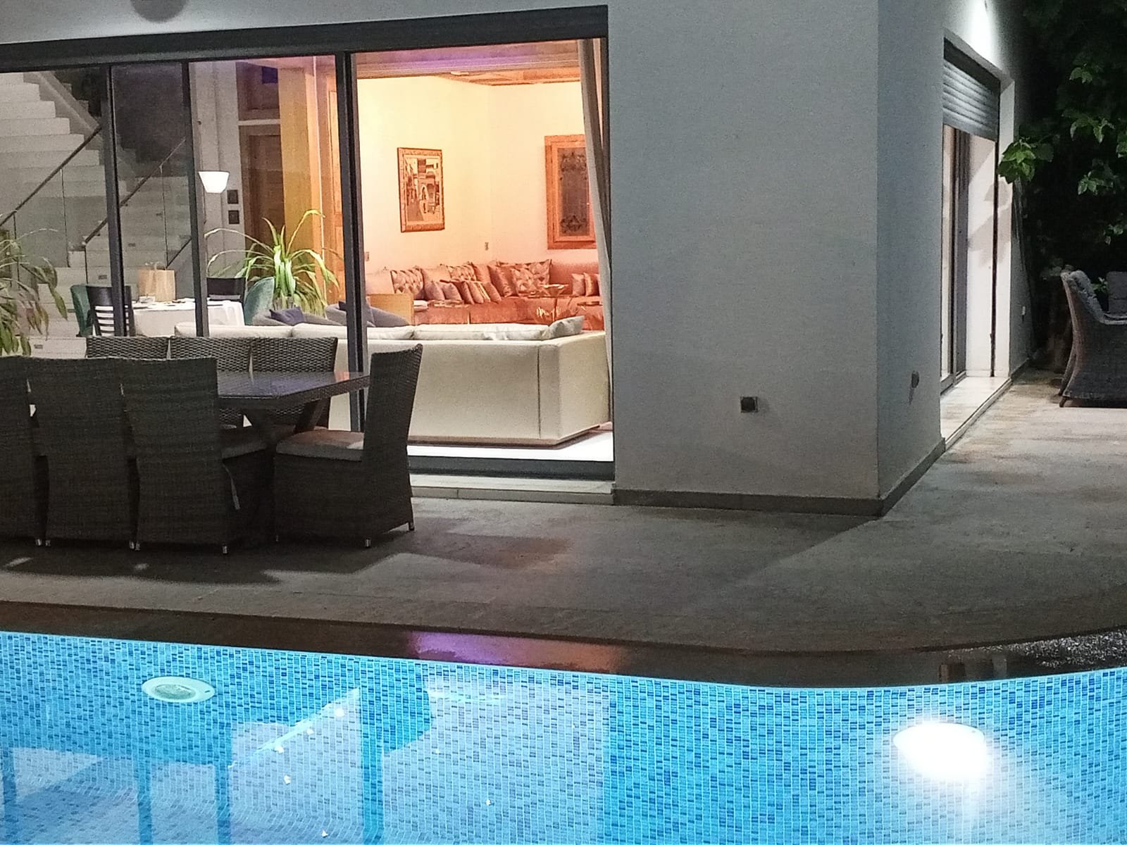 * Grande réception en double baies vitrées donnant sur la piscine et le jardin