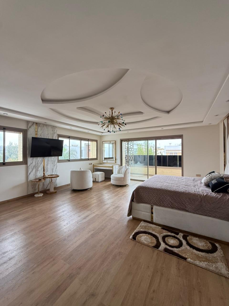 Magnifique villa haut standing, construite sur 3 niveaux, offrant confort, volumes généreux et prestations de très haute qualité, située à Rabat – Hay Riyad secteur 15, dans un environnement calme et recherché.
